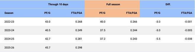 • 新赛季前十日趋势观察:进攻接近历史纪录 罚球犯规频率飙升